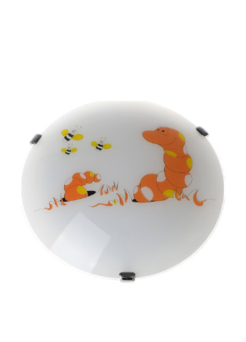 дитячий настінно-стельовий світильник Brille W-481/1 ідеально підійде для основного і додаткового освітлення. Виготовлений з металу і скла. Конструкція представлена одним скляним плафоном, прикріпленим на металеву основу. Плафон білого кольору, круглої форми, прикрашений зображенням гусениці і бджіл. Перевагою світильника є можливість використовувати в ньому різні лампи: розжарювання, енергозберігаючі, світлодіодні. Герметично закрита конструкція підійде для приміщень з відносно високою вологістю. Для його роботи необхідно використовувати дві лампи з цоколем Е27. Діаметр * висота, мм: 300 * 80