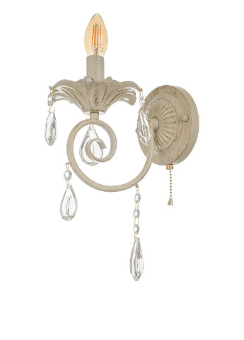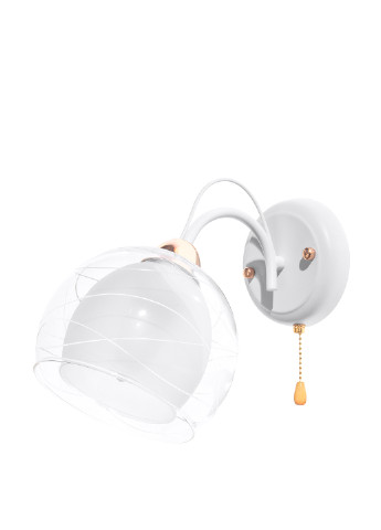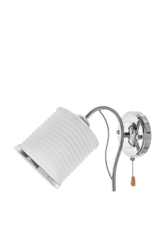 Виготовлено бра з металу і скла, поєднує в собі високу якість і гарний дизайн. А світильник і справді гарний, його скляний матовий білий плафон декорований ніжним візерунком. Металевий хромований каркас прикрашений скляними елементами у формі квіточок. Світильник виглядає ошатно і святково. Для роботи необхідно використовувати одну лампочку з цоколем Е27 (розжарювання, енергозберігаюча, світлодіодна). Додатково бра обладнано ланцюжком-вимикачем.