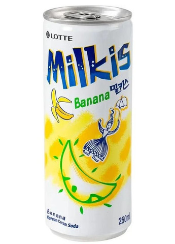 Напій газований Мілкіс Банан (Milkis Banana) 250 мл (ящик, 30 шт) – це унікальний газований молочний напій зі смаком йогурту з бананом, створений відомою південнокорейською компанією LOTTE. Цей напій поєднує в собі ніжність молока та легку освіжаючу газованість, утворюючи новий формат безалкогольного напою, який підкорив серця споживачів у багатьох країнах світу.