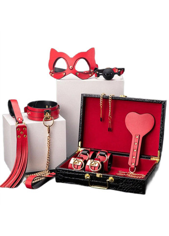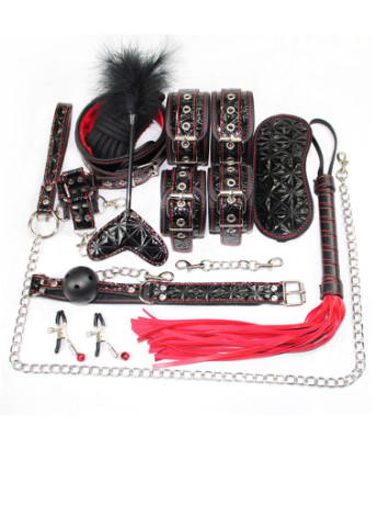 БДСМ набір (Бондажний набір, набір домінування) з 10 предметів та з матеріалу лакова PU-шкіра з тисненням ромби: