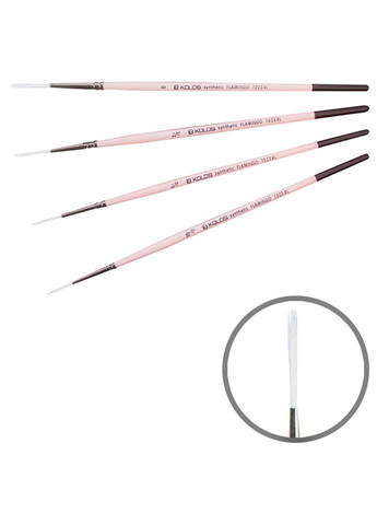 Серія MOON – пензлі з еластичного м'якого синтетичного білого волосу на короткій ручці. М’який, при цьому еластичний та контрольований волосяний пучок добре тримає початкову форму в сухому стані та зберігає її в вологому. Кругла та кутова форми формують гострий кінчик, що зручно для створення тонких ліній, прописання дрібних деталей, а також дає доступність в роботі з мілкими фрагментами. Найбільше підходить для роботи з акриловими фарбами.Ступінь жорсткості: ***Форми пензлів на короткій ручці серії MOON: кругла, плоска, овальна, кутова, лайнер.Кутова форма - ідеальна для створення тонких довгих ліній, ефектів гри світла й тіні, переходу одного кольору в інший, нанесення дуже тонких ліній, точкових акцентів, промальовування стрічок та квітів, створення текстури. Ними можна створити мазки які утворюють як плоскі, так і круглі пензлі, в залежності від їх положення відносно поверхні. Такі пензлі часто використовують для створення ескізів, адже ними легко нанести чіткі лінії та гострі кути.Основні характеристики синтетики кутової, MOON 1203А, ROSA:- Тонкий кінчик добре тримає форму;- хороший інструмент для створення переходу одного кольору в інший в важкодоступних, вузьких, дрібних частинах картини;- Для написання ефектів гри світла та тіні, нанесення тонких ліній, промальовування стрічок та квітів, створення текстури;- Номери: 0, 1, 2, 4, 6, 8.