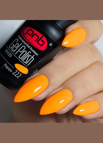 Гель-лак PNB Papaya пропонує чудовий помаранчевий колір для сонячного літнього манікюру. Він соковитий, як стигла папайя, має гарний легкий глянець. Гель-лак ПНБ відрізняється високою густиною відтінку. Розподіляється по нігтьовій пластині рівномірно з першого нанесення, миттєво самовирівнюється, не потребує повторного нанесення. Має повністю безпечну та еластичну 7Free формулу. Просушується всього 60 секунд в УФ/ЛІД лампах. Має унікальну стійкість - до 20 днів! PNB UV Gel Polish Line ― система гель-лакового покриття Унікальна формула гель ― лаків PNB дозволяє легко створити бездоганний манікюр, володіє ідеальним глянцевим блиском, яскравим кольором, приголомшливою стійкістю, без відколів і подряпин протягом трьох тижнів. Палітра складається з величезного числа самих модних відтінків цього сезону і зможе задовольнити самий вишуканий смак самих упереджених клієнтів. Гель ― лаки PNB Professional Nail Boutique (PNB) — це успішно розвивається на ринку нігтьової індустрії молодий бренд, який зумів за короткий час добре зарекомендувати себе серед майстрів і фахівців нігтьового сервісу PNB пропонує високоякісну продукцію преміум-класу, виробництва США, яка поєднує в собі новітні розробки і кращі інноваційні технології найбільших виробників в області beauty-індустрії. Працюючи з продукцією PNB, Ви відчуєте впевненість, ефективність і простоту у використанні; поєднання високої якості продукту з його прийнятною ціною; надійність і безпека пропонованої продукції. Переваги гелю-лаку: швидко твердне, що зменшує ризик змазування не обтяжує нігті, оскільки наноситься тонким шаром підходить для крихких нігтів, робить їх міцніше і еластичнішою гіпоалергенний, оскільки не містить у своєму складі шкідливих і дратівливих речовин зручний в нанесенні зберігає блиск і цілісність на нігтях протягом тривалого часу Наші гель-лаки легко поєднуються з топами та базами інших торгових марок, мають стійкість до 4-х тижнів і стійкість до тріщин, сколів та пошкоджень Термо гель лаки Viber 096 454 76 64 Фейсбук: Інстаграм:
