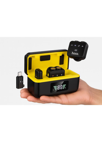 Бездротовий мікрофон Hoco L17 Dual-mic - це інноваційний пристрій, який піднімає якість мобільного звукозапису на новий рівень. Цей комплект з двох всенаправлених мікрофонів електретного типу ідеально підійде для блогерів, стрімерів, журналістів і всіх, кому необхідно записувати чистий звук без зайвих проводів. Особливості та переваги бездротового мікрофона Hoco L17 Dual-mic: • Сучасний дизайн зі стильними яскравими елементами, глянцевими і приємними на дотик матовими деталями. 105 грам загальна вага і неймовірно невелика вага одного мікрофона - всього 41 грам. • Надійні електронні компоненти та якісне складання корпусних деталей з міцного ABS пластику. • Оригінальна конструкція з магнітною панеллю для фіксації знімного затиску для кріплення мікрофона в найзручнішому місці. • Механічні кнопки для налаштування і LED дисплей для контролю статусу з'єднання, рівня заряду і роботи основних функцій. • Дві мікрофонні головки, які забезпечують якісний запис стерео звуку з широким обхватом. • 5-6 годин роботи в активному режимі від вбудованого акумулятора ємністю 75mAh. • Сучасний роз'єм Type-C для зарядки за допомогою кабелю і якісні контакти для зарядки від кейса. • Компактний ресивер з роз'ємом Type-C для підключення до сумісних пристроїв і прийому аудіосигналу на частоті 2.4GHz. • Додатковий роз'єм ресивера типу female, який зберігає можливість зарядки пристрою під час запису звуку. • Перехідник Type-C (female) - Lightning (male) для забезпечення сумісності з iPhone і iPad. • Зарядний кейс з LED дисплеєм для контролю рівня заряду, вбудованою батареєю ємністю 600mAh і роз'ємом Type-C для зарядки. • Сумісність зі смартфонами Huawei, Xiaomi, OnePlus та інших брендів, деякими моделями смартфонів Samsung, пристроями з роз'ємом Lightning з підтримкою системних оновлень на них. Hoco L17 Dual-mic - це стильний і функціональний інструмент, який задовольнить потреби професіоналів і любителів в записі чистого звуку. Він стане незамінним помічником у створенні якісного контенту.