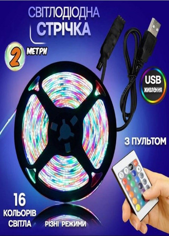 Світлодіодна стрічка відмінно підходить для фонового підсвічування телевізора, тематичного освітлення та декорування інтер'єру. Світлодіодна стрічка проста та інтуїтивно зрозуміла в управлінні, в комплекті до неї йде пульт, який дозволить налаштовувати колір стрічки під будь-який настрій. Стрічка довжиною 2 м працює від будь-якого джерела живлення з типом портів USB. Технічні характеристики: Довжина: 2 м; Тип живлення: від USB; Напруга: 5 - 12 В; Тип світлодіодної стрічки: SMD 5050; Кількість світлодіодів: 30 LED/метр; Комплектація: Світлодіодна стрічка; Пульт дистанційного керування; Контролер.