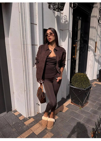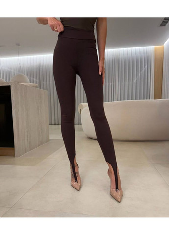 Сучасна інтерпретація класичних легінсів, що поєднує комфорт, трендовість і витонченість. Ідеально пасують до стильних повсякденних і вечірніх образів, підкреслюючи лінії фігури та візуально подовжуючи ноги. Фасон: облягаючі легінси з високою посадкою та еластичним поясом. Деталь: модна штрипка внизу штанини — елемент, який додає вишуканості та дозволяє зручно носити легінси з підборами чи взуттям на тонкій підошві. Матеріал: щільна еластична тканина з легким сатиновим відблиском, яка гарно тримає форму, не просвічується та комфортна у носінні. Колір: глибокий шоколадно-коричневий — елегантна альтернатива чорному, яка чудово поєднується з базовими відтінками.