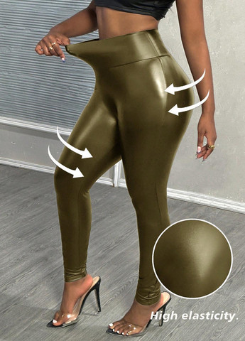 Колір Зелений / Матеріал Поліестер / Висота посадки Висока талія / Візерунок Однотонний / Стиль Кежуал