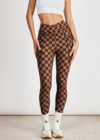 Колір Комбінований / Матеріал Поліестер / Висота посадки Висока талія / Візерунок Клітинка / Стиль Спортивний