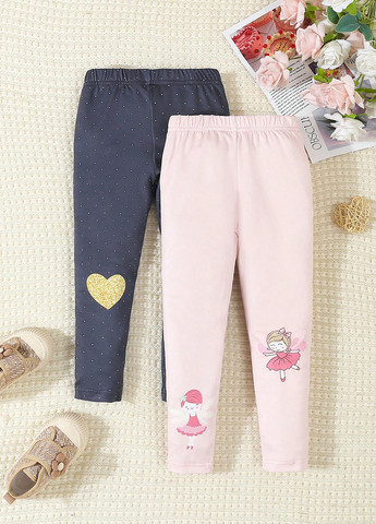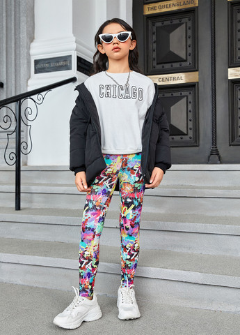 Легінси SHEIN для дівчаток з принтом Letter & Splash. Ці легінси мають злегка еластичну тканину.