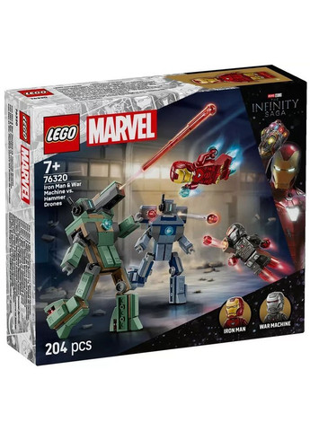 Конструктор LEGO (Лего) Super Heroes Marvel Залізна людина та Бойова Машина проти Хаммер Дронів - це супергеройський ігровий конструктор для дітей, які люблять бойові пригоди з колекційними предметами серії LEGO Marvel. Завдяки веселим функціям і крутій зброї цей маленький сюрприз для дітей стане ідеальним подарунком на тему супергероїв для хлопчиків і дівчаток віком від 7 років. Цей ігровий конструктор відтворює легендарну сцену битви у фільмі Marvel Studios Залізна людина 2. Він має мініфігурки Залізної людини й Бойової Машини, а також 2 складані Хаммер Дрони. Хаммер Дрони повністю рухомі, тож діти можуть змінювати пози складаних фігурок для реалістичної динамічної гри. Об'єднайтеся із Залізною людиною і Бойовою Машиною для пригод проти Хаммер Дронів! Ухиляйтеся від наплічного пружинного шутера зеленого дрона й знищуйте його потужним лазерним ударом Залізної людини. Стережіться подвійних плечових шутерів синього дрона! Бойова машина відповідає сліпучими червоними бластерами й наплічним шиповим шутером. Дрони продовжують наступати - і тільки ви можете їх зупинити! Основні переваги: супергеройський конструктор для бойової дії Залізної Людини для дітей віком від 7 років мініфігурки Залізної людини й Бойової машини з бластерами на кінцівках і зброєю Хаммер Дрони повністю з'єднані для реалістичної, динамічної гри зелені й сині Хаммер Дрони мають вбудовані шутери чудовий подарунок для дітей, яким подобається Залізна людина, бойові дії або фільми Marvel діти можуть масштабувати й обертати набори в 3D за допомогою інтуїтивного додатка LEGO Builder зелений Хаммер Дрон ігрового набору з 204 деталей сягає понад 10 см заввишки набори LEGO Marvel дарують дітям нескінченні можливості поринути в супергеройські пригоди Характеристики У наборі: 204 деталі, 2 мініфігурки, покрокова інструкція Виробник: LEGO, Чехія. Рекомендовано для дітей віком з 7 років.