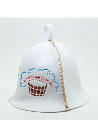Банна шапка незамінний аксесуар при відвідуванні лазні та сауни. Окрім оригінального зовнішнього вигляду або веселого слогану, вишитого на ній шапка виконує дуже важливу роль - вона береже нашу голову від перегріву. Ми рекомендуємо підходити до вибору шапки для лазні та сауни не менш відповідально, ніж при виборі іншого головного убору. Банна шапка з вишивкою З легкою парою виготовлена зі штучного фетру. Колір фетру білий. Модель має зверху петельку, яка дозволяє повісити шапку на гачок. Догляд за виробом: У пральній машинці вироби з фетру потрібно прати в режимі вовни, можна віджимати в делікатному режимі віджиму. Температура води не повинна перевищувати 40 градусів, особливо якщо кольорові вироби. Сушити потрібно виріб у розгорнутому вигляді.