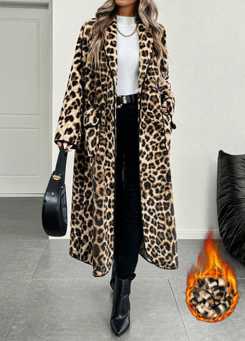 Зимова сукня вільного крою з леопардовим принтом, виготовлена з теплої тринитки на флісі. Капюшон затягується подвійним шнуром, який можна регулювати для зручності. Практичні кишені розташовані в бічних швах, а розріз на спинці додає рухливості та стильного акценту. Сукня поєднує комфорт і тепло, підкреслюючи вашу жіночність і створюючи неповторний образ, що виділить вас серед інших.