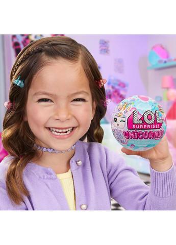 Зустрічайте дивовижний ігровий набір від L.O.L. SURPRISE! – ФАНТАСТИЧНІ ЄДИНОРОГИ! Це незвичайні прозорі лялечки-єдинороги з різнокольоровою рідиною всередині, що надає ефект лавової лампи. Починайте чарівне знайомство з креативним світом L.O.L. SURPRISE! 7 сюрпризів у кульці. В серії 6 колекційних лімітованих лялечок-єдинорогів. Зберіть їх усіх! Створіть свою особливу лялечку! У наборі є 2 різнокольорові суміші, які можна влити в ляльку-єдинорога та створити відчуття лавової лампи, коли різнокольорові крапельки ковзають одна повз одну всередині. Щоб додати колір всередину лялечки, відкрутіть її ріг на голові та по черзі додайте суміш. У лялечок «справжнє» волосся, щоб робити зачіски. Кожна лялечка-єдиноріг має свої унікальні кольори суміші. Увімкніть ліхтарик вашого телефону та поставте на нього лялечку, щоб підсвітити її та створити ефект лавової лампи! У наборі колекційна кулька, на яку можна поставити лялечку. У набір входить: лялечка тотс, 2 блискучі суміші, пара вушок, волосся, ріг для ляльки, ріг для кульки, кулька, лист колекціонера, інструкція. Зберіть усю колекцію L.O.L. SURPRISE!