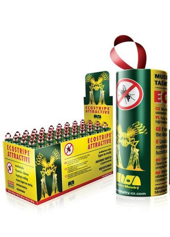 Липучка від мух Екострайп "Ecostripe", мухолів, засіб від мух. виробник Чехія Засіб боротьби з комахами Екострайп - найкращий варіант захисту від мух для дому і дачі протягом 2 місяців. Липка паперова стрічка від мух чеського виробництва "Ecostripe" Опис: Паперова липка стрічка від мух "Ecostripe" ― це зручний та простий засіб, який надійно захистить Вас та Вашу родину від мух. Спеціальний аттрактат є привабливою принадою для мух, що робить липкі стрічки Екострайп найпопулярнішими на споживчому ринку в Україні. Липка стрічка від мух чеського виробництва Екострайп , має більш ефективні властивості в порівнянні з продукцією інших фірм . На паперову стрічку нанесений клей з принадою від літаючих комах , який має властивості не висихати тривалий час, зберігаючи свою клейкість протягом 2х місяців. Безпечна для навколишнього середовища паперова стрічка з натуральною принадою гарантує ефективне звільнення від мух . Низька ціна липка стрічка Екострайп "Ecostripe" та висока ефективність робить їх особливо привабливими. Приманка від мух "Ecostripe" не містить токсичних речовин, підходить для алергіків. Спосіб застосування: Липкі стрічки використовують не тільки у приміщеннях, але також на відкритому повітрі – на дачі, городі, на балконі, на літній кухні, у вбиральні. Перед застосуванням нагрійте липку стрічку до кімнатної температури. Повільно при легкому повертанні витягнути за нитку-петлю липку стрічку від мух із пеналу. Розгорніть липку стрічку від мух і прикріпіть її у місцях найбільшого скупчення мух. Не вивішуйте на сонці поблизу відкритого вогню. Поміняйте стрічку на нову, коли на ній буде багато прилиплих мух. Уважно слідкуйте, щоб діти чи домашні тварини не змогли використовувати засіб не за призначенням