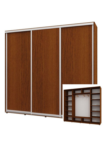ТОВАР ПІД ЗАМОВЛЕННЯ. ТЕРМІН ВИГОТОВЛЕННЯ 2 ТИЖНІ • Корпус і фасад виробу виготовлений із ламінованого ДСП завтовшки 16 мм. • Крайка зовнішніх деталей 2 мм, полиці, а також ящики 0.5 мм. Алюмінієвий профіль. • Шафи спроєктовані так, щоб забезпечити міцну, безпечну та стійку конструкцію. Компоненти розсувної системи та фурнітура проходять перевірку на міцність і довговічність. • Завдяки універсальній заводській присадці під час встановлення ви можете змінити розташування внутрішнього наповнення — змінити його дзеркально. • Шафа встановлюється на регульовані ніжки, які дають змогу виставити шафу рівно. • У комплекті передбачені стоєві, дах, дно, внутрішнє наповнення (полиці, труби), напрямні, двері та комплект фурнітури. • Шафа відвантажується в розібраному вигляді заводській упаковці.