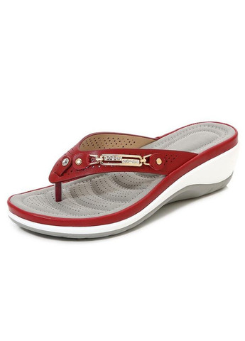 Колір Червоний / Тип каблука Танкетка / Декор Стрази, Пряжка, Без декору, Перфорація / Стиль Повсякденний, Домашній, Пляжний / Візерунок Однотонний