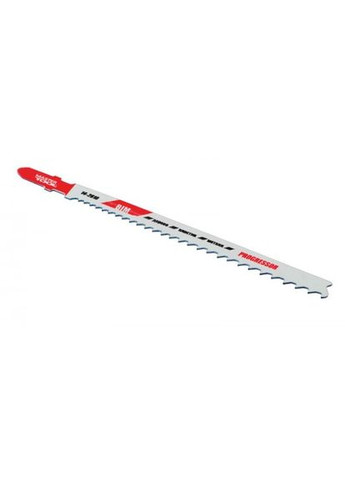 Пильне полотно для лобзика PROGRESSOR MASTERTOOL Набір пильних полотен для лобзика MASTERTOOL Progressor (14-2810) є витратним матеріалом електричного лобзика, який завжди повинен бути присутнім у майстра в достатній кількості. Дані полотна призначені для виконання чистого прямого різу за такими матеріалами як м'яка деревина (3-65 мм), ДВП, ДСП, пластик, ламінат. На всіх полотнах нанесено маркування з позначенням матеріалів, для яких вони призначені, щоб майстер швидше міг знайти необхідне полотно. Полотна оснащені хвостовиками Т-подібного типу, які є найбільш поширеними на даний момент і застосовуються більшістю відомих торгових марок з виробництва електролобзиків та оснащення для них. Завдяки цьому полотна будуть сумісні із широким модельним рядом електричних лобзиків. Пильні полотна виготовлені з високовуглецевої сталі (HCS), яка має відмінний комплекс властивостей з точки зору стійкості зубів до зносу та ріжучої здатності. Опис: чистий прямий різ тип сталі - HCS довжина - 116 мм довжина робочої частини – 93 мм TPI - 8.0-12 зуба/дюйм відстань між зубами – 2.0-3.0 мм розмір упаковки – 0,2x0,08x0,002 м кількість в упаковці - 5 шт вага – 0.056 кг MASTERTOOL – один із найвідоміших українських брендів інструменту. Діяльність компанії стартувала з 1991 року і на сьогоднішній момент у будь-якому регіоні України можна отримати інструмент та обладнання для ремонтно-будівельних робіт цієї марки. Відмінна позитивна характеристика інструменту MASTERTOOL - співвідношення ціна-якість. При гідній якості матеріалу виготовлення та зручній комплектації інструмент супроводжує невелика вартість.