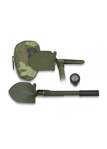 Характеристики Тип: складана лопата Матеріал рукоятки: алюміній Матеріал лопати: нержавіюча сталь Загальна довжина лопати: 78,6 см Довжина робочої поверхні лопати: 23,8 см Колір ручки: зелений Вага: 1,4 кг Стійкість до корозії: висока Чохол у комплекті: так Інструменти Лопата Сокира Мотика Ніж Склобій Стропоріз Пила велика Пила мала Викрутка Викрутка двостороння Відкривачка для пляшок Три ключі шестигранні (14,16 та 18 мм) Кресало/свисток Чохол Сумка для зберігання