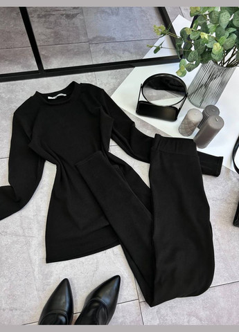 Цей комплект-двійка — це ідеальне поєднання елегантності та термозахисту, створений для того, щоб ви почувалися тепло та стильно протягом усього холодного сезону. Костюм виготовлений із високоякісного трикотажу "Пума", який має відмінну щільність, еластичність та здатність добре зберігати тепло, забезпечуючи при цьому комфортне облягання. Гольф з високою горловиною-стійкою слугує ідеальним базовим шаром. Лосини щільно облягають фігуру та мають модні штрипки, які надійно фіксують їх під стопою, гарантуючи бездоганний вигляд під будь-яке взуття. Це незамінний комплект для створення багатошарових зимових образів.