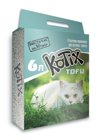 Наповнювач KOTIX TOFU Classic, 6L (6шт/ящ) Складається з 100% натурального сирья - спресованої маси соєвих волокон. Є виняткові властивості по поглинанню вологості і неприємних запахів. Його м’яка структура і легка вага робить його зручнішим і легшим у використанні. Завдяки своїй структурі вона не дратує лапи кота і полегшує адаптацію вашого улюбленого до нового наповнення. Через свій біологічний склад наповнювач легко ковтається і не розсипається під час очищення лотка. Природне походження і м’яка структура волокон наповнить KOTIX Tofu придатним для утилізації через загальну каналізаційну систему шляхом змивання в унітаз. Також його можна використовувати як комплексне мінеральне добриво для садових рослин. Склад: Спресована маса соєвих волокон, харчовий крохмаль, ґуарова камедь. Зміст вологи: Менше 10%. Поглинаюча здатність: Понад 300%. РЕКОМЕНДАЦІЇ З ІСПОЛЬЗОВАНИЮ 1. Наповніть сухий і чистий лоток зміст пакета шаром 5-6 сантиметрів. 2) Регулярно убирайте тверді екскременти. 3) Перемішуйте вміст лотка раз у 1-2 дні. 4. Приблизно 1 раз у 4 тижні повністю замініть на свіжий. 5 Можна змивати в унітаз невеликими порціями! 6. Якщо тварині важко пристосуватися до нового наповнення, спробуйте протягом тижня змішувати його з тим наповненням, яким користувалися раніше у співвідношенні 1:1. Але пам’ятайте, що це може зменшити силу, яка поглинає і ковтає властивості наповнювача. МЕРИ УПЕРЕДСТОРОЖНОСТІ - Не слід зберігати наповнення поруч з продуктами і кормом для тварин; - після використання мити руки; - залишок наповнення зберігати у щільному закритому пакеті; - Захистити від дітей, щоб уникнути ризику випадкового ковтань. Зберігати у сухому місці при відносній температурі + 25 ° C і відносної вологості не більше 45%. Строк придатності не обмежений. Дата виробництва визначається на стикері і збігається з номером партії виробництва. Безпечно. Відповідає сертифікатам ISO9001, SGS, BSCI.