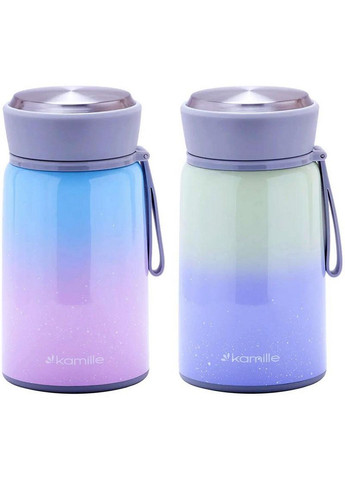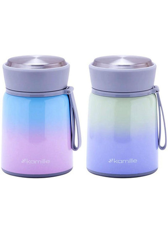 Термос харчовий Kamille Marigee, об'єм 530мол. Корпус та внутрішня колба виконані з нержавіючої сталі. Гігієнічний матеріал, що відмінно підходить для транспортування різних гарячих та холодних продуктів (як рідких, так і других страв), не вимагає особливого поводження. Термос із нержавіючої сталі стійкий до механічних пошкоджень, колба не виділяє шкідливих речовин при контакті з харчовими продуктами, не має запаху. Зовнішня кришка комбінована: пластик+нержавіюча сталь. Внутрішня кришка з місцем під ложку – в комплекті складана столова ложка з нержавіючої сталі. Стильний дизайн – кольоровий сталевий корпус. Колір на вибір: рожево-блакитний градієнт або фіолетово-зелений градієнт. Висота термосу 15.6см. Серія: Marigee; Матеріал: Нержавіюча сталь; Об'єм: 530 мл; Розмір: Висота 15.6 см; Кришка: закручує внутрішня та зовнішня; Температурний режим: 6-8 годин; Комплектація: 1 термос, 1 ложка; Посудомийна машина: Так;