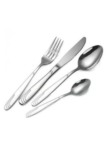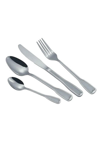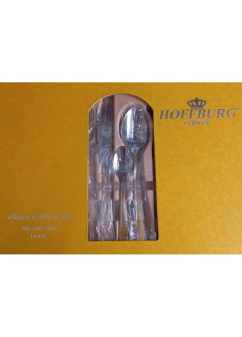 Набір столових приладів Hoffburg HB 24004 GS 24 предмета Набір столових приладів Hoffburg це стильне та практичне рішення для вашої кухні. Виготовлені з високоякісної нержавіючої сталі ці столові прилади забезпечують довговічність і надійність у використанні. Набір включає всі необхідні елементи для сервірування столу: ложки, вилки, ножі, а також спеціальні прилади для десертів. Елегантний дизайн та полірована поверхня надають набору сучасного та витонченого вигляду, що робить його ідеальним як для повсякденного використання, так і для святкових заходів. Завдяки зручній формі прилади зручно тримати в руці, що робить їжу більш комфортним. Характеристики: Тип: столовий набір Матеріал: нержавіюча сталь Кількість предметів: 24 Кількість персон: 6 Колір: сірий Виробник: Hoffburg Склад набору: Ніж столовий: 6 шт Ложка столова: 6 шт Вилка столова: 6 шт Чайна ложка: 6 шт