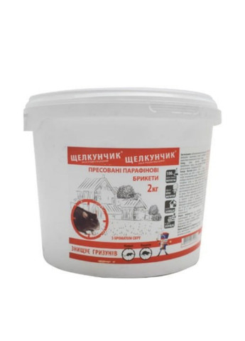 Лускунчик - це приманка на основі зернової суміші. Містить в складі сирний і арахісовий ароматизатор, феромон і муміфікуючий компонент. Застосовується для знищення мишовидних гризунів. Діюча речовина приманки Лускунчик - бродіфакум, 0,005%. Даний компонент принади дозволяє знищувати гризунів стійких до інших типів родентицидів. Загибель гризуна настає через 3-7 днів після поїдання. Завдяки відсутності ефекту миттєвого отруєння, інша популяція гризунів продовжує поїдати приманку. В результаті антикоагуліруючої дії бродіфакуму, гризуни відчувають потребу в повітрі і покидають свої нори, гинучи, як правило, на відкритих просторах. Застосування приманки: Приманку висипають або розкладають в місцях заселення гризунами (приватний і промисловий сектор, склади, сховища, місця зберігання та утилізації сміття і харчових відходів). Бажано використовувати контейнери або лотки, для обмеження розтягування приманки гризунами і поїдання нецільовими тваринами. Норма витрати:20-50 м (для мишей), 50-100 г (для щурів), 1,5-2,5 кг/Га при використанні на сільськогосподарських угіддях. 1 раз в 7 днів необхідно проводити контроль наявності приманки в лотках. У разі поїдання - додавати нову порцію, до повної зупинки поїдання. Препарат відноситься до малотоксичних (4 клас небезпеки).