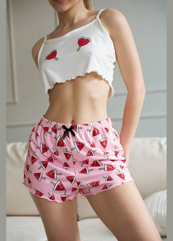 Маємо відео, питайте у менеджера на сайті ⚡️💓 🍉 Літній вайб у кожній деталі 🍭 Цей домашній комплект – справжній смак літа! • Білий топ на тонких бретелях із принтами у формі сердець-льодяників • Легкі рожеві шортики з малюнками соковитих кавунів • Комфортна посадка та приємна до тіла тканина 🍉Ідеальний для спекотних днів, затишних вечорів☺️ ✔️Розміри S, M S: груди 85-91, стегна 86-94 М: груди 90-94, стегна 94-98