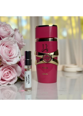 Аромат відкривається соковитим тандемом чорної смородини й зеленого танжерина, створюючи свіжий, енергійний старт. Смородина дарує кислувато-солодкий акцент із ледь терпким відлунням, тоді як танжерин, менш гіркий за апельсин, забезпечує зелену цитрусову жвавість, додаючи аромату легкості. У серці композиції вирує справжня цукеркова феєрія. Поєднання полуничного шипучого льодяника (Strawberry Fizz Candy) та гарденії створює ефект дівочого настрою, який балансує між м’якою чуттєвістю квітів і яскравим, грайливим солодким акордом. Гарденія тут надає аромату кремової жіночності, підкреслюючи солодкість, не дозволяючи їй стати надмірною. База Yara Candy тепла й затишна: ваніль у поєднанні з амброю формує вершково-бальзамічний шлейф. Мускус додає ніжності та жіночності, а сандалове дерево завершує образ м’якою деревною основою, яка обіймає аромат, наче кашемірова вуаль.