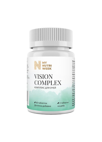 Vision Complex пропонує унікальну комбінацію рослинних екстрактів, каротиноїдів та амінокислот, розроблену для гармонійного включення до щоденного раціону дорослих Рекомендована добова доза: 2 таблетки Кількість на порцію (2 таблетки) L-таурін 250 мг Екстракт очанки 220 мг Екстракт насіння гарбуза 200 мг Екстракт ягід чорниці 180 мг Лютеїн 40 мг Зеаксантін 16 мг Вітамін E (d-альфа-токоферилацетат) 15 мг