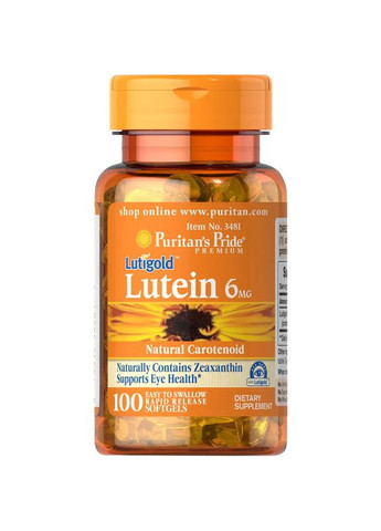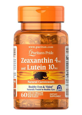 Комплекс каратиноидов, що мають сильні антиоксидантні властивості, особливо корисний в зрілому віці, коли їх кількість починає падати. Обидва інгредієнти включені в цей препарат підтримують оптичну щільність макулярного пігменту в очах, природним чином допомагаючи утримати зір в нормі або поліпшити стани при проблемах і захворюваннях очей. Комбінація інгредієнтів, цієї харчової добавки, сприятливо впливає на здоров'я Ваших очей і попереджає серйозні захворювання очей і сітківки. У століття комп'ютерних технологій, постійних переглядів гаджетів, цей препарат незамінний. Лютеїн є прекрасним очним фільтром від випромінювання і підживленням очного пігменту. Дуже важливо регулярно піклується про здоров'я Ваших очей особливо для дітей і людей старшого віку. Лютеїн має багато інших позитивних якостей, наприклад лютеїн є потужним антиоксидантом, зміцнює серцево-судинну систему захищає від ризику виникнення інфарктів, запобігає зайвому накопиченню холестерину. Лютеїн не виробляється в організмі і з віком потреби в нім збільшуються, тому варто звернути особливу увагу на прийом харчових добавок з цим компонентом. ДЛЯ ЧОГО ПОТРІБНИЙ ЗЕАКСАНТИН З ЛЮТЕЇНОМ ВІД ПУРИТАН ПРАЙД? покращує гостроту зору (навіть вночі); зміцнює стінки очних судин; перешкоджає руйнуванню, відшаровуванню і "старінню" сітківки; прискорює регенеративні процеси після операції на очах. Рекомендації по прийому: Приймати по одній капсулі двічі в день, бажано під час їжі.