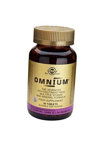 Omnium Phytonutrient Complex – Solgar – ідеальне поєднання життєво важливих компонентів в одній капсулі! Для забезпечення нормальної життєдіяльності та підтримки здоров'я в нормі людина має щодня включати до раціону цілий перелік вітамінів, мінералів та мікроелементів. Але з їжею в організм надходить лише невелика кількість корисних речовин, оскільки неможливо з'їсти стільки продуктів харчування, щоб заповнити всі необхідні потреби. З цим завданням чудово справляються мультивітамінні комплекси, одним із яких є Omnium Phytonutrient Complex від американської компанії Solgar. Omnium Phytonutrient Complex – багатокомпонентний комплекс, що складається з вітамінів, мінералів та мікроелементів. Разом вони доповнюють одна одну, а деякі допомагають кращому засвоєнню в організмі іншим складовим. Склад Omnium Phytonutrient Complex грамотно підібраний, а компоненти внесені до правильної пропорції. Таке багато поєднання корисних речовин благотворно діє на весь організм: • Підвищує імунітет; • Благотворно впливає на стан шкіри, волосся, нігтів, сприяє активному виробленню колагену; • Покращує роботу серця, судин, нормалізує тиск, перешкоджає утворенню тромбів; • Допомагає подолати хронічну втому, депресію, покращує якість сну, а також бореться з авітамінозом у міжсезонний період; • Регенерує клітини та бере участь у насиченні їх киснем; • Чинить антиоксидантну дію, захищаючи від згубного впливу вільних радикалів; • Прискорює обмін речовин; • Виводить з організму «поганий» холестерин та токсичні речовини; • Бореться із закисленням клітин та запаленнями; • Нормалізує гормональну та репродуктивну системи; • Зміцнює кістки, м'язи та суглоби, усуває в них біль та спазми; • Регулює роботу щитовидної залози та рівень цукру в крові; • Допомагає швидко відновитись після інтенсивних фізичних чи розумових навантажень; • Активізує мозкову діяльність, збільшує концентрацію уваги. Omnium Phytonutrient Complex (Solgar) – це комплексний підхід до збереження здоров'я та молодості! Склад: Склад на порцію – 2 таблетки: Вітамін А (як натуральний бета-каротин) 4,500 мкг Вітамін С (з ефіру С у вигляді аскорбатів кальцію, магнію, цинку) 300 мг Вітамін D (у вигляді ергокальциферолу) 5 мкг (200 МЕ) Вітамін Е (у вигляді D-альфа-токоферилсукцинату) 201 мг Вітамін К (у вигляді фітонадіону) 20 мкг Тіамін (у вигляді тіамінмононітрату) 30 мг Рибофлавін 35 мг Ніацин (у вигляді ніацинаміду, ніацину) 60 мг Вітамін ) 50 мг Фолат 666 мкг DFE (400 мкг фолієвої кислоти) Вітамін B12 (у вигляді ціанокобаламіну) 100 мкг Біотин (як D-біотин) 100 мкг Пантотенова кислота (у вигляді пантотенату D-Ca) 80 мг ) 75 мг Кальцій (у вигляді аскорбату кальцію, хелату амінокислоти гліцинату) 35 мг Залізо (у вигляді хелату з бісгліцинатом заліза) 9 мг Йод (у вигляді йодистого калію) 150 мкг Магній (як гліцинат амінокислоти хелат Цинк (у вигляді хелату з гліцинатною амінокислотою, аскорбат цинку) 15 мг Селен (у вигляді L-селенометіоніну) 70 мкг Мідь (у вигляді гліцинату амінокислоти хелат) 1,5 мг Марганець (у вигляді гліцинату амінокислоти хелат) піколінату хрому) 100 мкг Молібден (як хелат амінокислоти гліцинату) 50 мкг Натрій 10 мг Калій (як комплекс гліцин калію) 10 мг Інозитол 75 мг Екстракт соєвих зародків 50 мг Стандартизований екстракт куркуми (4 ) 50 мг Капуста броколі Екстракт 50 мг Комплекс фосфатидилсерину (фосфатидилсерин 10 мг [20%]) 50 мг N-ацетил-L-цистеїн 50 мг Цитрусовий біофлавоноїдний комплекс 50 мг Полі