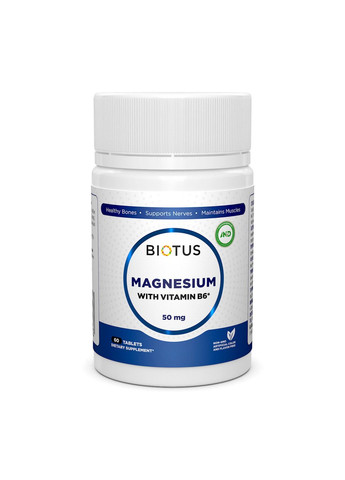 Основні переваги: Magnesium with Vitamin B6, Biotus, 60 таблеток Magnesium with Vitamin B6, Biotus, 60 таблеток – це унікальний продукт, розроблений для підтримки здоров'я організму Состав: Размер порции: 1 таблетка Количество порций: 60 Кількість на порцію % от суточной потребности** магній 50 мг * вітамін 1.5 мг * Вітамін С 5.1 мн * * Суточная потребность не определена.