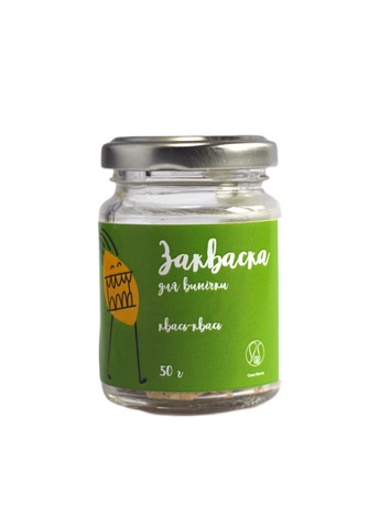 Закваска для бездріжджової випічки, 50 г (у скляній банці). Закваска виготовлена з пророщених зерен пшениці, жита, ячменю та вівса. Вона є «вічною» — за умови регулярного підживлення частина завжди залишається для наступної випічки. Бездріжджова випічка на такій заквасці має низьку калорійність (близько 177 ккал) і зберігає більше корисних речовин: вітаміни групи B, РР, магній, залізо. Завдяки високому вмісту клітковини вона покращує травлення, не викликає бродіння та важкості у шлунку, легко засвоюється й підходить для регулярного споживання. Процес приготування хліба триває від 11 до 13 годин, що дозволяє тісту повністю розкрити смак і аромат. Як використовувати: Після отримання закваску потрібно підгодувати — додати 100 мл теплої води та 50 г житнього борошна, перемішати й залишити у теплому місці до появи бульбашок повітря. Для підтримання активності рекомендується підживлювати не рідше 1 разу на тиждень. Зберігання: У холодильнику у відкритій скляній або керамічній тарі до тижня без підживлення. Термін придатності — необмежений за умови регулярного підживлення. Країна виробництва: Україна.