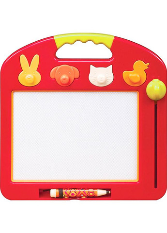 Магнітна дошка для малювання - це відмінний спосіб для тренування дрібної моторики малюка, розвитку його творчого потенціалу та для першого його знайомства з літерами, цифрами та геометричними фігурами. За допомогою невеликого стілусу з металевим кінчиком дитина малюватиме на магнітному полі все, що йому заманеться. Важіль унизу дошки допоможе стерти намальоване і почати все заново. На панелі дошки ви знайдете дві фігурні печатки. Розмір досточки: 32 х 22 х 2 см Панелі для малювання: 19 х 12,5 см