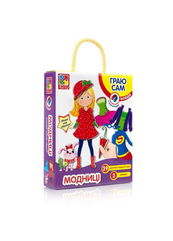 Відправка протягом 1-2 робочих днів. Героїня цієї магнітної одягалки – блогер! Вона обожнює веселі вбрання у кадрі. А ще має її одяг на всі випадки. Пропонуємо розглянути її гардероб трохи ближче! Що робити? Підберіть дівчинці вбрання, в якому вона проведе свою трансляцію. Загляньте в книгу-інструкцію та подивіться підказки. А також експериментуйте, поєднуйте різні елементи гардеробу, створюйте свої оригінальні образи та стиль! Наприклад: одягаємо вбрання для стриму чи вечірки! Шукаємо всі магнітні елементи та кріпимо їх до ляльки. Готово! Граємо та тренуємо: уяву, креативне мислення, творчі навички та дрібну моторику. Набір містить: 51 магніт, ляльку, сюрприз, інструкцію. Країна реєстрації бренду: Україна; Виробник: Vladi Toys; Розмір, см: 14х7х27,5 см; Країна-виробник товару: Україна; Габарити: ширина: 14; Габарити: висота: 7; Габарити: довжина: 27.5; Вік: Від 3-х років; Матеріал: Комбінований; Тип: Магнітний; Торгівельна марка: Vladi Toys; Колір: Різнокольоровий; Розмір виробу: 14х7х27,5 см; Пол: Для дівчаток; Упаковка: Картонна коробка; Вікова група: Від 3 років;