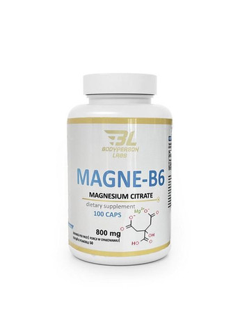 Вміст елементів у 1й порції: 2 капсули Магній (цитрат) 1600 мг - магній 249.6 мг Вітамін В6 (піридоксин гідрохлорид) 2.8 мг Інгредієнти Мікрокристалічна целюлоза – наповнювач, капсула: магнію стеарат, яловичий желатин.