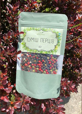 Суміш чотирьох перців: білий, чорний, зелений, рожевий. Білий перець – плід тієї ж рослини, що і знайомий для всіх нас чорний перець. Його обробляють особливим чином. Білий перець духмяніший, ніж чорний перець, але не такий пекучий. Чорний перець має болезаспокійливу, протизапальну, загальнозміцнюючу, бактерицидну, глистогінну, відхаркувальну та сечогінну дію. Він підвищує стресостійкість та налагоджує роботу серцево-судинної, травної, ендокринної та дихальної систем. Зелений перець отримують з плодів тієї ж перцевої ліани, що і чорний, і білий перець. Горошини зеленого перцю збираються недозрілими і не піддаються обварюванні. Смак у цього перцю менш гострий, зате він більш ароматний і ніжний. Рожевий перець досить популярний при використанні в кулінарії завдяки своєму незвичайному смаку, що поєднує нотки анісу і кислинку журавлини. Підходить ідеально для фінальної нотки в салатах, супах, до макаронів, омлету і будь-яких видів м яса, риби і морепродуктів.