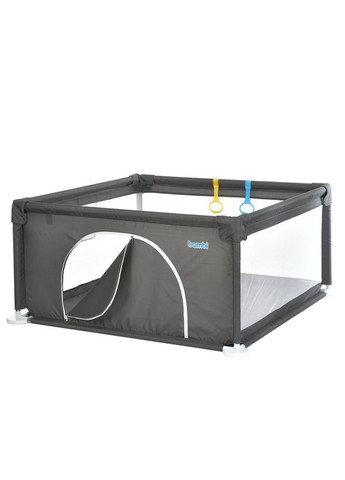 Переваги нашого дитячого манежу: Компактна модель, ідеальна для невеликих приміщень. Високоякісний матеріал 150D OXFORD — міцність, довговічність і стійкість до зносу. Щільна сітка — міцна та стійка до розривів. Пластикові підставки з присосками — забезпечують надійну фіксацію манежу на будь-якій поверхні. Тканинні дверцята на блискавці — міцніші та надійніші за стандартні сітчасті рішення. Манеж, ш123-в61см, ширина з ніжками 132см, 1 вхід/застібка-блискавка, 2 ручки