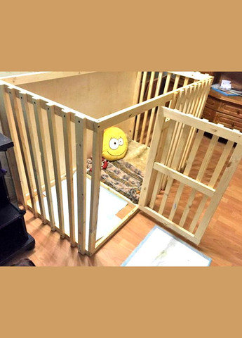 Дерев’яний вольєр для цуценят - це конструкція, яка забезпечить безпеку домашніх улюбленців, особливо дрібних порід, і допоможе захистити інтер'єр квартири від зубів і кігтів. Домашні улюбленці часто відчувають стрес, хоча господарі звикли вважати це поняттям, що відносяться тільки до людської психіки. Наприклад, щеня відчуває стрес в новому будинку: він позбавляється матері, а навколо незвична обстановка. Дорослі особини можуть мати потребу в особистому просторі і спокої, це стосується вагітних або самок що тільки народили. Іноді в ізоляції потребує хворий пес, якому необхідний комфорт, але в той же час його потрібно захистити від будь-яких контактів. У таких випадках необхідний вольєр або манеж для домашніх улюбленців. Розміри зовнішні: висота - 40см, глибина - 130см, ширина - 130см. Матеріал: дерево. Покриття: рідкий віск. Виріб ручної роботи та виготовлений виключно з натуральних, екологічно чистих матеріалів.