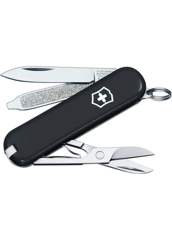 Серія малих швейцарських ножів VICTORINOX містить мініатюрні моделі (58 мм), які можна використовувати як брелок для ключів, що робить їх корисними та зручними в повсякденному житті. Більшість ножів з цієї серії забезпечені ножицями та манікюрною пилкою, що дає змогу використовувати їх як дорожній манікюрний набір. Ножі-брелоки VICTORINOX мають широку колірну гамму і відмінно підійдуть прекрасним аксесуаром як для чоловіків, так і для жінок і дітей. Окрім класичних, моделі мають варіанти накладок з національною символікою, створені в підтримку України. Модель Classic SD – це один із найменших швейцарських ножів-брелків від відомої компанії Victorinox. Габарити в складеному вигляді становлять 58 мм, що дозволяє розмістити ніж у кишені або підвісити на ключі. Попри невеликий розмір, модель отримала клинок із нержавіючої сталі, який не поступається функціональністю більш габаритним побратимам. Ножиці та пилка для нігтів завжди допоможе підтримувати в бездоганному вигляді ваші нігті. До того ж кінчик пилки можна використовувати як пласку викрутку. Кільце на торці дозволяє підвісити ніж разом з ключами, або прикріпити до нього темляк. Набір інструментів, що входять до багатоцільового ножа Victorinox Classic SD: - Лезо; - Ножиці; - Пилка для нігтів з пласкою викруткою 2,5 мм; - Кільце для підвісу; - Пінцет та зубочистка (тільки для версій з пластиковими накладками)