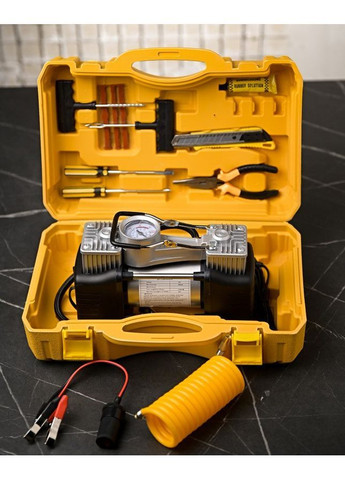 Пристрій оснащений трьома насадками різної форми. Їх можна використовувати не тільки для шин автомобіля, але також для велосипедних коліс, човнів, матраців та інших надувних виробів. Компресору зовсім не потрібна електрика. Робота відбувається безпосередньо від енергії прикурювача, просто підключіть його до необхідного роз'єму автомобіля. Надійний шнур акуратно закручується та не заламується. Практично, зручно та швидко!