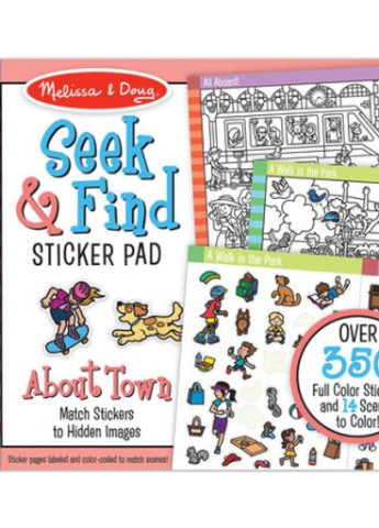 Ця забавна гра-пошук, розмальовка та подушка для наклейок – все в одному! Підберіть понад 400 повнокольорових наклейок до прихованих об'єктів на 14 міських тематичних сторінках, а потім розфарбуйте в деталізованих сценах олівцями, маркерами або олівцями для створення унікальних картинок. Сторінки з наклейками мають кольорове маркування та позначені для відповідності сценам. Багаті деталі включають фермерський ринок, лікарню, шосе, парк, школу, аеропорт, парк розваг, ресторан, торговий центр, музей, кафе, будівельний майданчик, автовокзал і пожежну частину. Перфоровані краї дозволяють легко видаляти сторінки з наклейками відповідно до сцен.