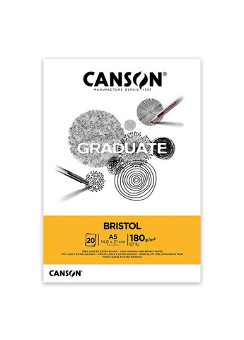 Серія Graduate Bristol Canson має надзвичайно гладкий папір щільністю 180 г/м². Особливо підходить для точних малюнків олівцем і маркером завдяки міцній поверхні паперу.Ідеально підходить для: олівців, лінерів або будь-якої техніки, яка потребує гладкої поверхні та чітких ліній.Характеристики:Склейка паперу екстра білого кольору;Гладка поверхня паперу;Ідеально підходить для: олівців, маркерів, лінерів;Щільність паперу 180 г/м2;Кількість аркушів: 20 листів.Доступні формати: А5 (14,8х21 см), А4 (21х29.7 см).