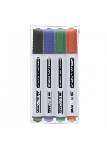 Маркери Buromax на водній основі для білої дошки, слід маркера легко стирається в сухому стані, не токсичні, конусний наконечник Кольори в асортименті: червоний, чорний, синій, зелений Ширина лінії 2 - 4 мм Ціна вказана за 4 маркери в пакуванні