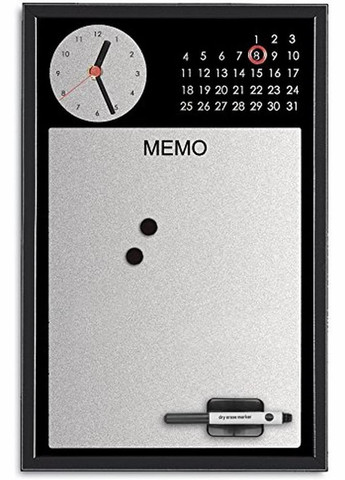 Настінний металевий органайзер Bi-Office з годинником, 30 x 45 см Настінний органайзер Bi-Office з металевою поверхнею та вбудованим годинником — ідеальний вибір для організації вашого простору. Розміри органайзера складають 30 x 45 см, а стильний чорний рама з МДФ доповнює сучасний і класичний дизайн. Лаковане сріблясте покриття надає органайзеру елегантності та стильного вигляду. Функціональність: Може використовуватися для будь-яких місяців і років, зручний для прикріплення нотаток або маркування повідомлень. Комплектація: В комплект входять 1 дошка, 1 чистячий засіб для дошки . Додаткові особливості: Вбудований годинник для зручності планування. Чорна рама органайзера легко вписується в будь-який інтер’єр, будь то офіс чи домашня обстановка. Пакування включає: маркер для дошки та чистячий засіб. ПРИМІТКА (2- ва магнити відсутні, ціна знижена)