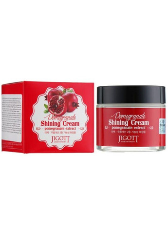 Jigott Pomegranate Shining Cream - це крем для обличчя, насичена формула якого надасть шкірі різнобічний догляд. Регулярне застосування крему вранці та ввечері допоможе поліпшити колір шкіри, заповнить запаси вологи, посилить захист від агресивних впливів і наповнить клітини корисними компонентами. Гранат став основним екстрактом у складі не просто так. Це потужний компонент, який містить у собі антиоксиданти, що захищатимуть епідерміс від негативних впливів і раннього старіння. Екстракт граната також сприяє зволоженню і живленню шкіри, робить її мякою і гладенькою. Мінеральна олія допомагає зволожити шкіру і зберегти її еластичність, гліцерин доповнює зволожуючий ефект, а стеаринова кислота створює захисний барєр, що допомагає утримувати вологу всередині шкіри. Екстракт алое має заспокійливі властивості та допомагає помякшити та зняти подразнення шкіри, а екстракт листя камелії китайської допомагає посилити природне сяйво і блиск шкіри. За допомогою ніацинаміду поліпшується колір шкіри та знижується видимість пігментації. Високий вміст вітаміну C в олії гранатових кісточок сприяє підтримці тонусу та еластичності шкіри. Екстракт граната корисний не тільки для шкіри обличчя, але й благотворно впливає на волосся, надаючи їм блиск та силу. Олія гранатових кісточок посилює мікроциркуляцію крові у шкірі голови, прискорюючи ріст волосся. Спосіб застосування Невелику кількість крему нанесіть на обличчя по масажних лініях. Дайте йому ввібратися. Наносьте за 30 хвилин до виходу на вулицю.