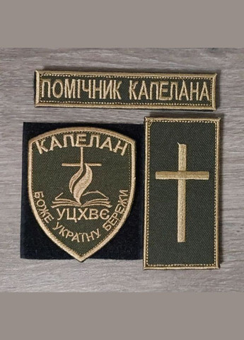 Комплект шевронів Священик, польовий чорний нитка срібло (шеврон, пагон, планка). Машинна вишивка в 1 колір сріблом на чорному оксфорді. Нитки якісні та не вицвітають. Шеврони кріпляться за допомогою липучки. Розмір планки 12,0 Х 2,5 см, пагона 10Х5 см, шеврона 8,5 Х 7 см, але можна зробити індивідуальний розмір на замовлення (вказати в коментарях). У коментарях додати матеріал комплекту, якщо відрізняється від чорного (мультикам/олива/кайот/хакі). Колір окантування та інші моменти, якщо відрізняються від базового набору.