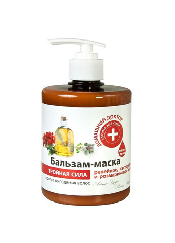 Бальзам-маска для волосся Домашній Доктор - забезпечує комплексний догляд за волоссям і шкірою голови, допомагаючи відновити силу і природний блиск. Засіб робить волосся м'яким, слухняним і шовковистим, полегшуючи розчісування і укладання. Основні переваги: сприяє зміцненню волосся і зниженню його випадіння має відновлюючу і антибактеріальну дію доглядає за шкірою голови, покращуючи її стан надає волоссю об'єм, блиск і шовковисту гладкість полегшує розчісування і робить волосся більш слухняним Спосіб застосування: Нанести бальзам-маску на прикореневу зону і розподілити по всій довжині волосся від коренів до кінчиків. Змити водою. Не використовувати під поліетиленову шапочку. Характеристики Об'єм: 500 мл Виробник: Домашній Доктор, Україна.