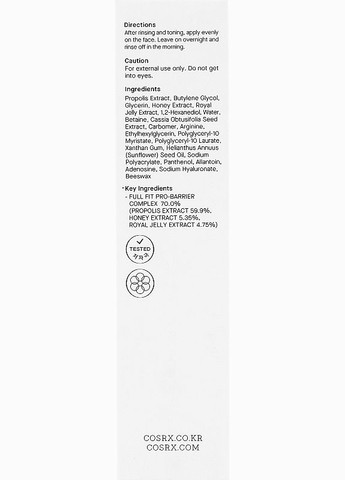 Cosrx - Поживна нічна маска з прополісом - Full Fit Propolis Honey Overnight Mask - 60ml Ця нічна маска від Cosrx - ідеальний засіб для тих, хто хоче перетворити свою шкіру уві сні. Спеціально розроблена формула з прополісом та медом забезпечує інтенсивне живлення та зволоження шкіри, роблячи її м'якою, пружною та сяючою. Нічний час - ідеальний момент для відновлення та регенерації шкіри. Ця маска працює під час сну, коли шкіра найбільш відкрита для поживних речовин. Прополіс і мед у складі маски мають протизапальні властивості, сприяють загоєнню та покращують загальний стан шкіри. Прокинувшись вранці після застосування маски, ваша шкіра виглядатиме відпочилою, зволоженою та сяючою. Крім того, регулярне використання маски допоможе боротися зі втомою шкіри, надаючи їй здорового та доглянутого вигляду. Пориньте у світ догляду за шкірою під час сну з цією дивовижною нічною маскою від Cosrx. Дозвольте своїй шкірі насолодитися всіма перевагами прополісу та меду, щоб прокинутися з красивою та доглянутою шкірою щоранку.