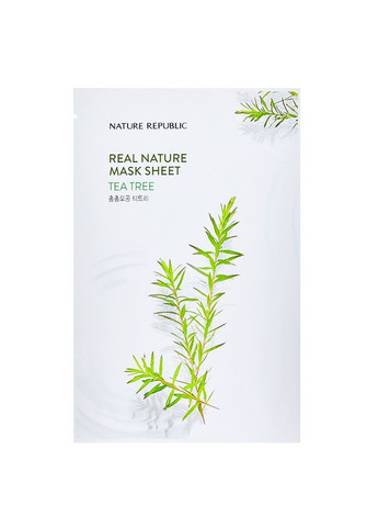 Заспокійлива маска з екстрактом чайного дерева Nature Republic Tea Tree Real Nature Mask Sheet — це прекрасне рішення для ефективного догляду за проблемною, схильною до надмірної жирності та висипань шкірою. Вона надає ранозагоювальну, антисептичну та заспокійливу дію, звужує пори, усуває жирність шкіри, регулює роботу сальних залоз, має антибактеріальну, тонізувальну та регенерувальну властивості, насичує клітини корисними речовинами, бореться з прищами та загоює пошкоджені зони епідермісу, повертаючи обличчям гарний і здоровий вигляд. Основні інгредієнти: Екстракт чайного дерева — має чітко окреслені протизапальні та антисептичні властивості, ліквідує почервоніння, лікує акне, сприяє швидкому загоєнню шкіри. Екстракт центели азіатської — стимулює вироблення й оновлення власних колагенових волокон, збільшує щільність і еластичність тканин. Сприяє регенерації клітин, регулює гідроліпідний баланс. Має ранозагоювальну дію, допомагає прибирати рубці та пігментні плями. Трегалоза — надає потужну зволожувальну дію, уповільнює процеси старіння й має антиоксидантну активність. Особливості Real Nature Mask Sheet Tea Tree: Головний активний компонент — цілющий екстракт чайного дерева; Заспокоює почервоніння й запалення; Сприяє звуженню пор і усуненню прищів; Бореться з висипанням вугрів і акне; Стимулює процеси оновлення та регенерації шкірного покриву; Має протизапальні та антибактеріальні властивості; Усуває надмірний жирний блиск, регулюючи роботу сальних залоз; Знімає набряклість і вирівнює мікрорельєф епідермісу. Спосіб застосування: Нанести на чисту шкіру. Залиште на 15-20 хвилин, а потім видаліть. М'яко помасажуйте шкіру до повного вбирання есенції. Склад: Water, Glycerin, Dipropylene Glycol, Alcohol, Hydroxyethylcellulose, Butylene Glycol, 1,2-Hexanediol, Paeonia Suffruticosa Root Extract, Centella Asiatica Extract, Trehalose, Melaleuca Alternifolia (Tea Tree) Leaf Extract, PEG-60 Hydrogenated Castor Oil, Chamomilla Recutita (Matricaria) Flower Extract, Glyceryl Caprylate, Arginine, Carbomer, Ethylhexylglycerin, SOdium Hyaluronate, Glyceryl Acrylate/Acrylic Acid Copolymer, Melaleuca Alternifolia (Tea tree) Leaf Oil, PVM/MA Copolymer, Lavandula Angustifolia (Lavender) Extract, Melissa Officinalis Leaf Extract, Origanum Vulgare Leaf Extract, Pelargonium Graveolens Extract, Eucalyptus Globullus Leaf Extract, Mentha Piperita (Peppermint) Leaf Extract, Disodium EDTA, Fragrance